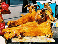 在新疆與北京烤鴨媲美的名貴菜肴就是烤全羊,是維吾爾族的一大傳統(tǒng)名肴。在烏魯木齊、喀什、和田等地的巴扎爾都可聞到它特有的香味??救虿粌H是街頭的風(fēng)味小吃,而且也是維吾爾人招待貴客的上等佳肴,現(xiàn)在也成為高級筵席中的