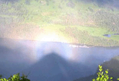 有關(guān)專業(yè)人士稱,“佛光”是由于當(dāng)?shù)剡B日來的大量降雨和天氣的驟然變化造成水氣較大,光線遇到這些水氣折射形成的。真是難得一見的。