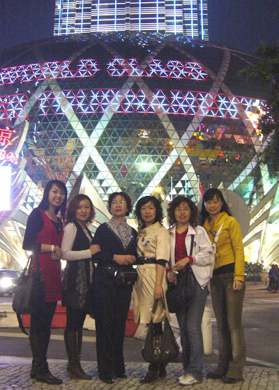 澳門(mén)以彩博業(yè)的歷史悠久而著稱,入夜,霓虹閃爍、奢華無(wú)比,金莎、巴比倫、金龍等娛樂(lè)場(chǎng)所比比皆是。欲望在賭場(chǎng)里橫流,賭客不僅僅是青壯年,不乏白發(fā)長(zhǎng)者。有興趣的團(tuán)員也小賭了一把,親身體驗(yàn)了下一國(guó)兩制的特色。
