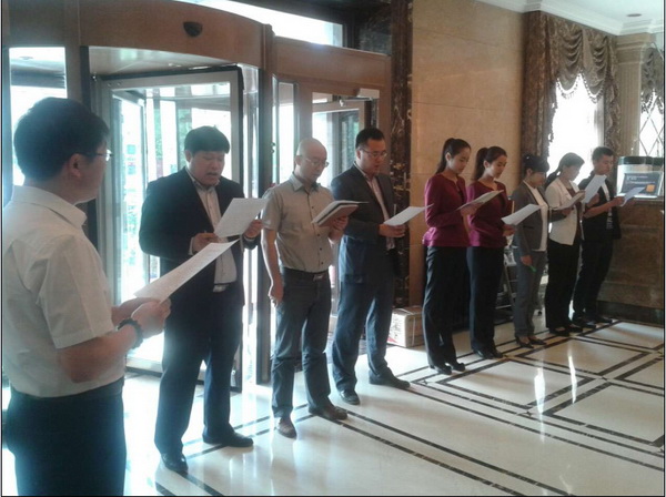 出色的業(yè)績源于專業(yè)的團隊,專業(yè)的團隊源于點滴的努力。5月16日早上10:00整,由人力資源部總監(jiān)兼部長鐘江華牽頭,與銷售中心全員針對晨會的流程進行演練,以此來規(guī)范并確定晨會的相關事宜。
