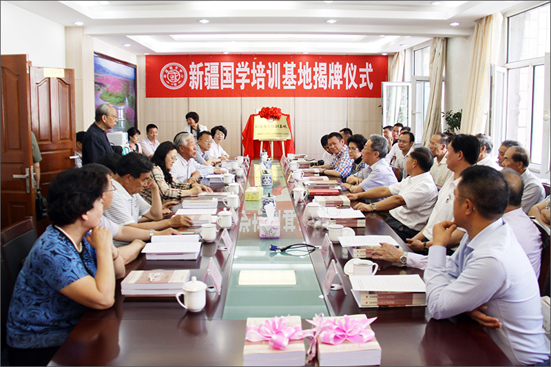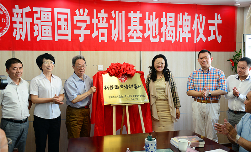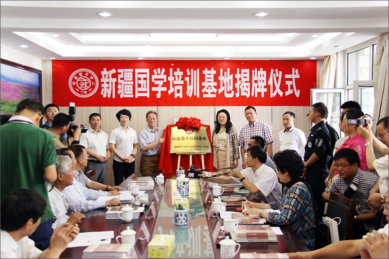 為弘揚中華民族傳統(tǒng)文化精華、建設(shè)各民族共有的精神家園,由自治區(qū)人民政府參事室(文史館)主導(dǎo)的“新疆國學(xué)培訓(xùn)基地揭牌儀式”,于 6月23日在自治區(qū)政府參事室(文史館)會議室隆重舉行。國家文化部原部長、中央文史研究館館員、自治區(qū)人民政府文化顧問王蒙和自治區(qū)人民政府參事室(文史館)黨組書記張曉寧為新疆國學(xué)培訓(xùn)基地揭牌,標志著自治區(qū)人民政府參事室(文史館)在我區(qū)設(shè)立的第一家國學(xué)培訓(xùn)基地在新疆華春投資集團正式建立。