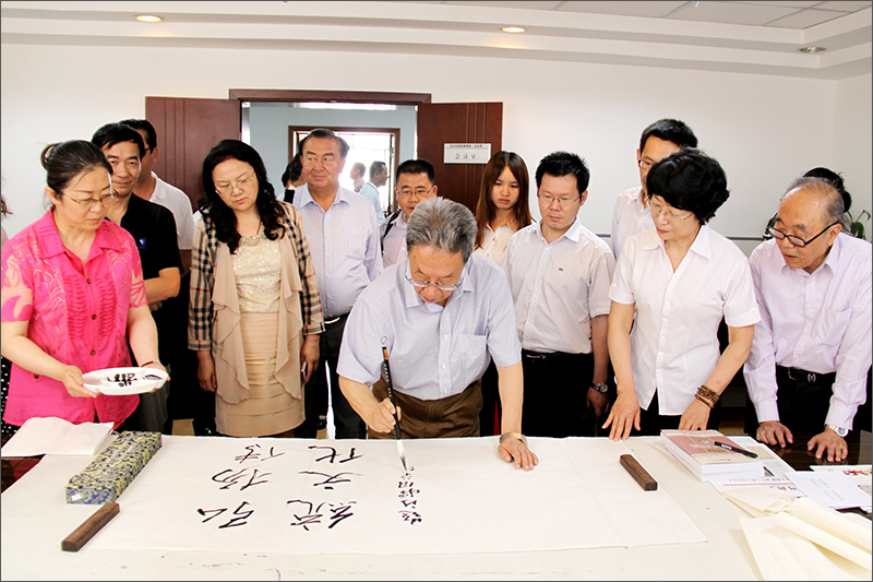 儀式結(jié)束后,王蒙現(xiàn)場揮毫潑墨,為建立在新疆華春投資集團的新疆首家國學(xué)培訓(xùn)基地題詞:“弘揚傳統(tǒng)文化”,并為《華春視野》刊物簽名。