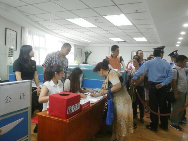 2014年8月3日,御宮華府項目原三維平房業(yè)主搖號分房會議在恒潤公司3#會議室召開,秉承華春集團“公正、公平,對社會負責任的態(tài)度”,會議中邀請公證處人員進行公證,采取公平、公正的搖號方式,全程進行攝像,153戶平房安置業(yè)主進行選房。在華春執(zhí)行總裁鄧潔文女士的大力支持及安置小組兩年的長久努力下,恒潤公司副總經(jīng)理韓晶女士帶領(lǐng)行政辦認真配合,促使搖號分房活動圓滿結(jié)束。
