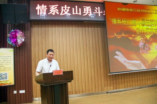 8月11日上午,自治區(qū)見義勇為基金會(huì)“情系皮山勇斗暴徒群體 助力反恐英模重建家園”獻(xiàn)愛心動(dòng)員會(huì)在自治區(qū)人民檢察院隆重舉行。自治區(qū)黨委政法委副書記、見義勇為基金會(huì)常務(wù)副理事長劉克勤與自治區(qū)紀(jì)檢監(jiān)察廳、司法廳、審計(jì)廳、公安廳等黨政領(lǐng)導(dǎo)以及新聞媒體參會(huì)。