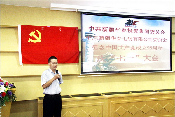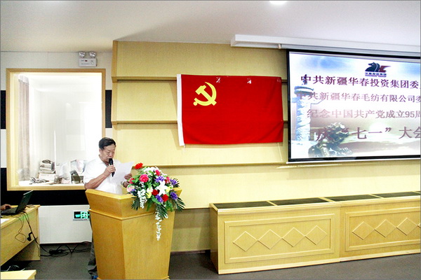 為慶祝中國共產(chǎn)黨建黨95周年,迎接“七一”黨的生日,6月28日,集團(tuán)黨委與華春毛紡黨委慶“七一”黨員大會在華春毛紡AAA級旅游工業(yè)園舉行,60多名來自華春各條戰(zhàn)線的共產(chǎn)黨員和入黨積極分子的代表參會。