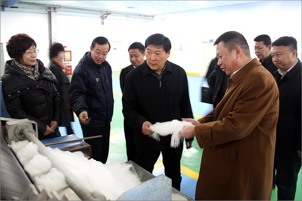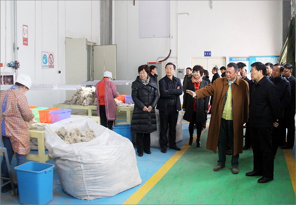 郭永輝一行從羊絨洗梳到羊絨染色、梳紡等羊絨服裝制品全程生產(chǎn)加工進(jìn)行了考察。新疆華春集團(tuán)李成功總裁與集團(tuán)高管及華春毛紡管理人員就華春毛紡生產(chǎn)經(jīng)營(yíng)情況,向郭永輝一行進(jìn)行了匯報(bào)。郭永輝常委指出,要盡快培育自己的品牌,增強(qiáng)羊絨服裝制品的附加值。對(duì)華春毛紡被定為AAA國(guó)家級(jí)旅游景區(qū)以來(lái)的工作給予了肯定。