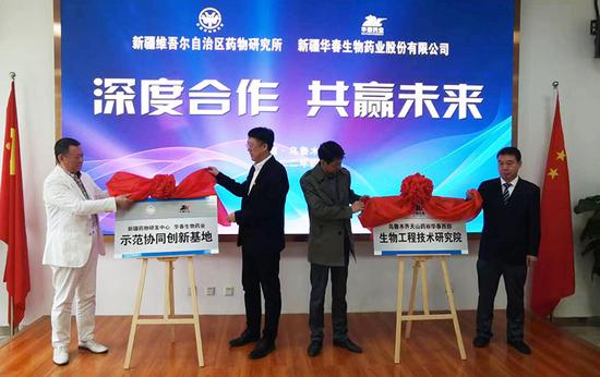當(dāng)日,雙方還為合作組建的新疆藥物研發(fā)中心華春生物藥業(yè)示范協(xié)同創(chuàng)新基地、烏魯木齊天山藥谷華春西部生物工程技術(shù)研究院舉行了揭牌。