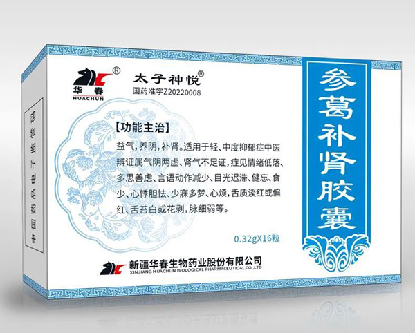 “參葛補腎膠囊”是以中醫(yī)“腎陽虧虛”發(fā)病機理為依據(jù),取材新疆的太子參、葛根、淫羊藿等天然醫(yī)藥資源,發(fā)揮中醫(yī)復方用藥特點,用于治療輕中度抑郁癥的創(chuàng)新中藥。國家中藥藥理專家葉祖光:“藥品的優(yōu)點是發(fā)揮了中醫(yī)復方用藥的特點,既有益氣作用又有補腎的作用同時還有升陽、活血、化瘀的作用,而且藥品經(jīng)過現(xiàn)代藥理學篩選確定,是既符合中醫(yī)理論又經(jīng)過試驗證明的有效方藥。”