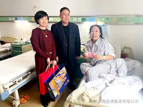2月5日,當(dāng)新疆華春投資集團董事局主席兼總裁李成功先生得知員工金奮榮的妻子患病住院動手術(shù)的消息后,立即委托集團副總裁馬生忠與華春小貸總經(jīng)理助理尹海玲前往醫(yī)院看望,為員工金奮榮患病妻子送上3000元慰問金和兩箱慰問品,并送上華春大家庭的親切關(guān)懷之情。