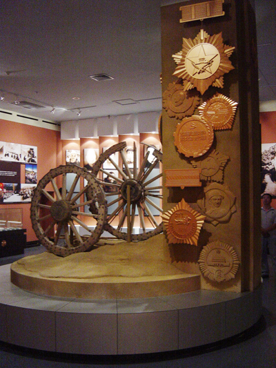 最令人感動(dòng)的是在大型穹幕展廳,逼真的展示著軍墾戰(zhàn)士在那西北邊陲天蒼蒼、野茫茫的亙古荒原,以其革命的樂(lè)觀主義精神戰(zhàn)天斗地的墾荒史,在他們手中奇跡般的將戈壁荒灘變成一個(gè)現(xiàn)代化的園林城市。軍墾精神,彪炳史冊(cè)!
