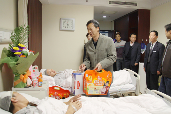 11月16日,烏魯木齊高新區(qū)工會(huì)主席韓建新一行6人,前往醫(yī)學(xué)院住院部看望慰問(wèn)了為保護(hù)公司財(cái)產(chǎn),而被昌吉州多斯巴億農(nóng)業(yè)開發(fā)有限責(zé)任公司打傷的烏魯木齊市華春商貿(mào)有限公司7名員工。