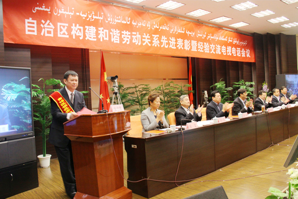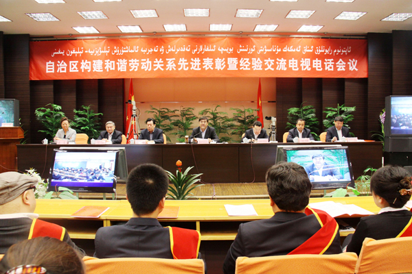 自治區(qū)構(gòu)建和諧勞動(dòng)關(guān)系先進(jìn)表彰暨經(jīng)驗(yàn)交流電視電話會(huì)議出席的領(lǐng)導(dǎo)