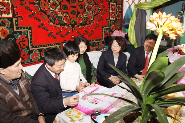 這是在2012年的“三八”國(guó)際勞動(dòng)?jì)D女節(jié)到來(lái)之際,華春投資集團(tuán)工會(huì)主席高青、工會(huì)委員鄭培君和已故員工阿里木•阿吾東生前所在企業(yè)即華春投資集團(tuán)下屬的新疆華景物業(yè)服務(wù)有限公司的管理人員一行,帶著華春投資集團(tuán)總裁李成功先生和華春全員的深情厚誼,特地前往已故員工阿里木•阿吾東的家,看望慰問(wèn)了其父母與妻子、孩子,送上鮮花和慰問(wèn)品,致以誠(chéng)摯的關(guān)愛(ài)之情并送上節(jié)日的祝福,使已故員工的家屬真切感受到了來(lái)自華春這個(gè)大家庭的關(guān)懷和溫暖。