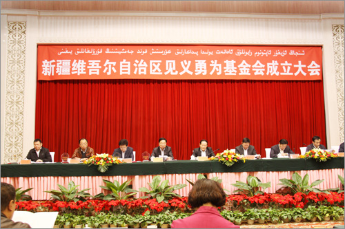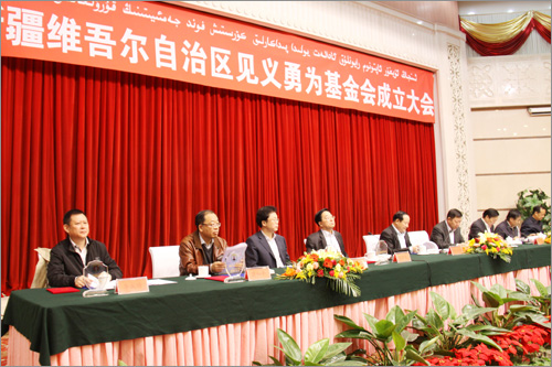 自治區(qū)黨委、政府高度重視見義勇為基金會的成立,自治區(qū)主席努爾•白克力為基金會名譽會長,自治區(qū)黨委常委、政法委書記熊選國和自治區(qū)副主席、公安廳廳長朱昌杰為基金會名譽副會長,原自治區(qū)人大常委會副主任張國梁擔任基金會理事長。自治區(qū)黨政各部門領(lǐng)導參加了大會,會議由自治區(qū)黨委副秘書長、政法委常務(wù)副書記郭永輝主持。