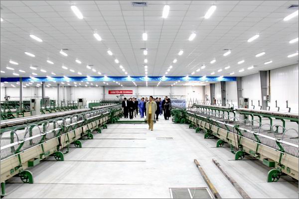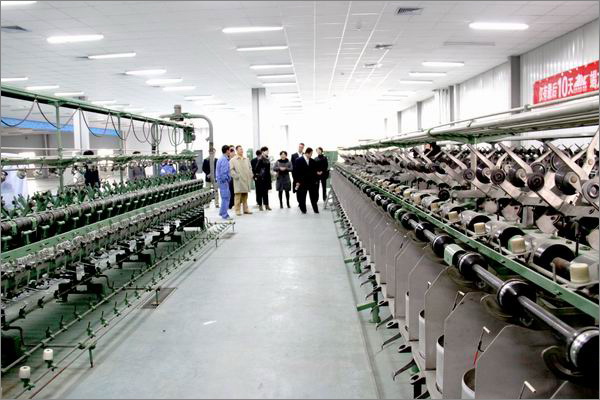 李總裁帶領(lǐng)管理人員參觀梳紡車間