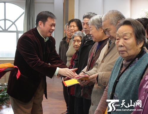 天山網(wǎng)訊(記者王樹勤攝影報(bào)道)11月25日上午,新疆華春投資集團(tuán)2009年度員工父母長壽敬老基金發(fā)放儀式正式啟動(dòng),近百位員工的父母一個(gè)個(gè)手捧著裝有敬老基金的紅包,臉上洋溢著幸福和喜悅。自治區(qū)工商聯(lián)副主席艾爾肯·木沙長等領(lǐng)導(dǎo)出席了發(fā)放儀式。