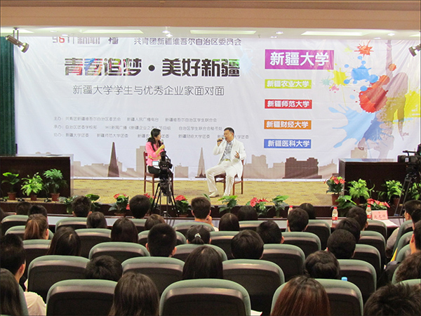 由自治區(qū)團(tuán)委和新疆人民廣播電臺(tái)聯(lián)合主辦的“青春追夢(mèng)•美好新疆——新疆大學(xué)學(xué)生與優(yōu)秀企業(yè)家面對(duì)面”活動(dòng),于6月5日在新疆大學(xué)隆重舉行,特邀請(qǐng)自治區(qū)政協(xié)常委、工商聯(lián)副會(huì)長(zhǎng)、新疆華春集團(tuán)董事局主席兼總裁李成功先生主講。新疆大學(xué)各學(xué)院老師、學(xué)生代表等約350余人參加此次活動(dòng)。